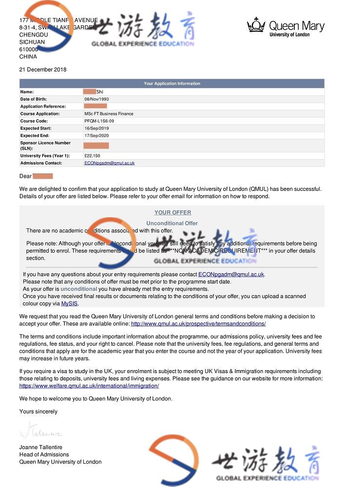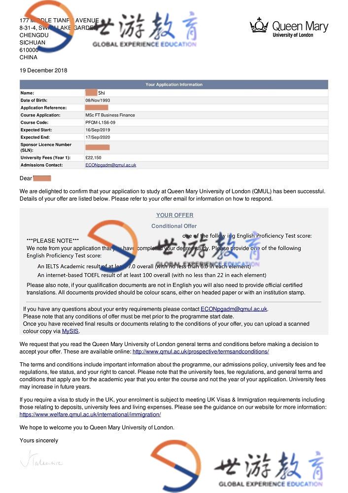 摘要:施同学加拿大阿尔伯塔大学本科由于毕业GPA低,未拿到荣誉学位,只有diploma,同时没有语言成绩,在我们专业团队及老师的帮助下, 成功申请到伦敦玛丽女王大学商业金融专业。